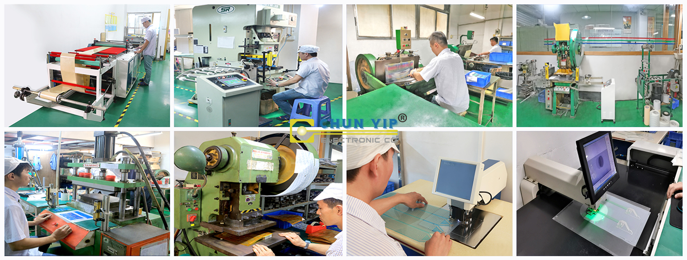 拥有全自动打端子机1台、半自动打端子机2台、手动打端子机1台、覆膜机4台、全自动打孔机1台、半自动打孔机2台、点灯机3台等;2条装配流水线将面板层、垫片和电路封装在一起,形成一个完整的层薄膜开关。